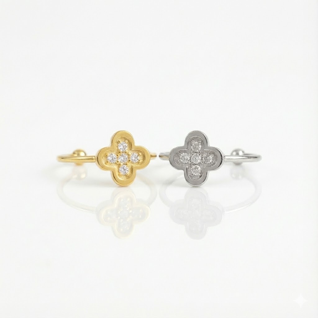Découvrez notre BAGUE – KELIO, un modèle fin et élégant inspiré du trèfle porte-bonheur pour apporter douceur et féminité à votre style. Son motif délicatement orné de petites pierres apporte un éclat subtil sans en faire trop, parfait pour un look raffiné au quotidien. Conçue en acier inoxydable de haute qualité, elle résiste à l’eau et ne noircit pas. Ajustable, elle s’adapte facilement à la taille de votre doigt pour un confort idéal.