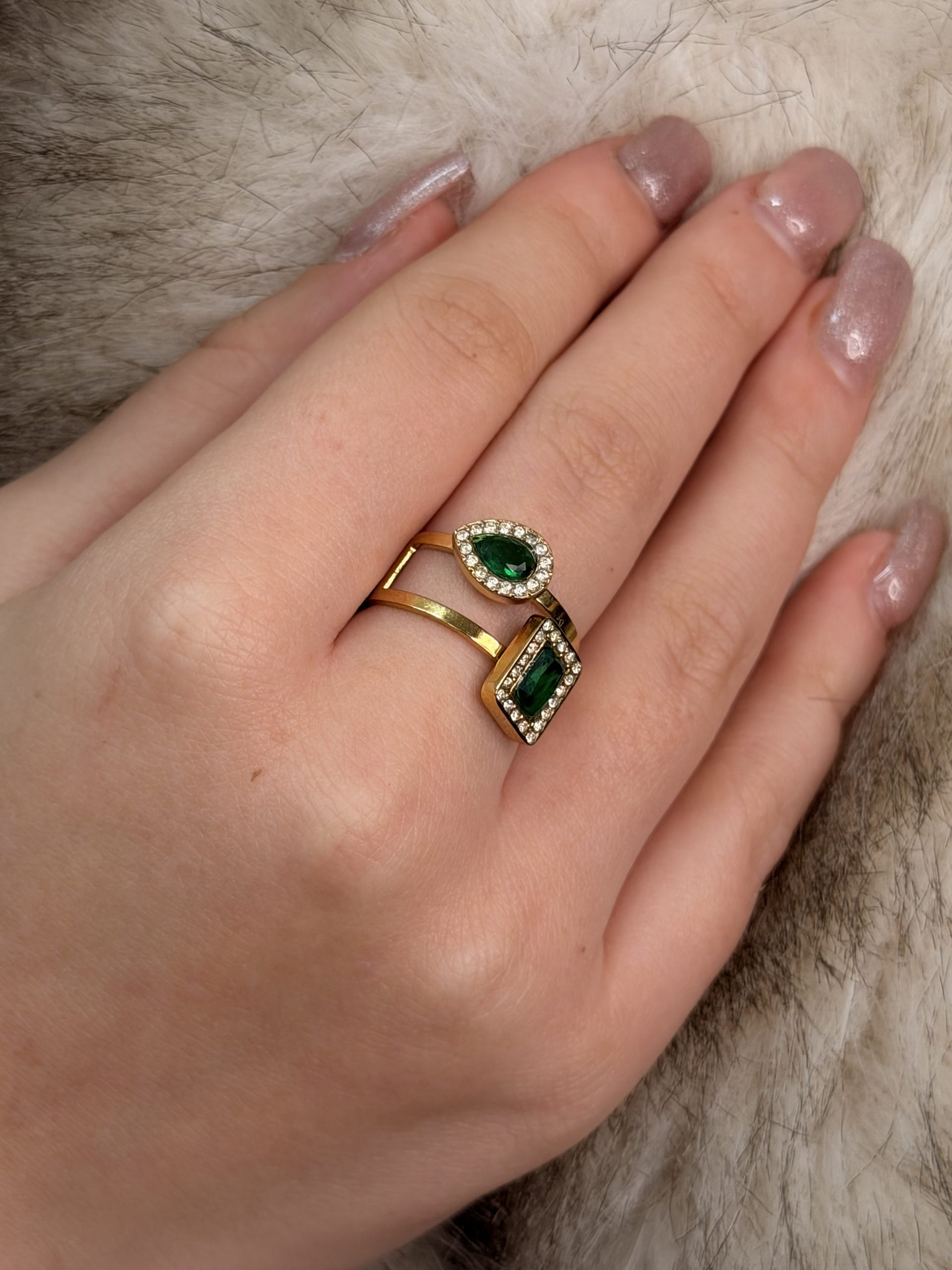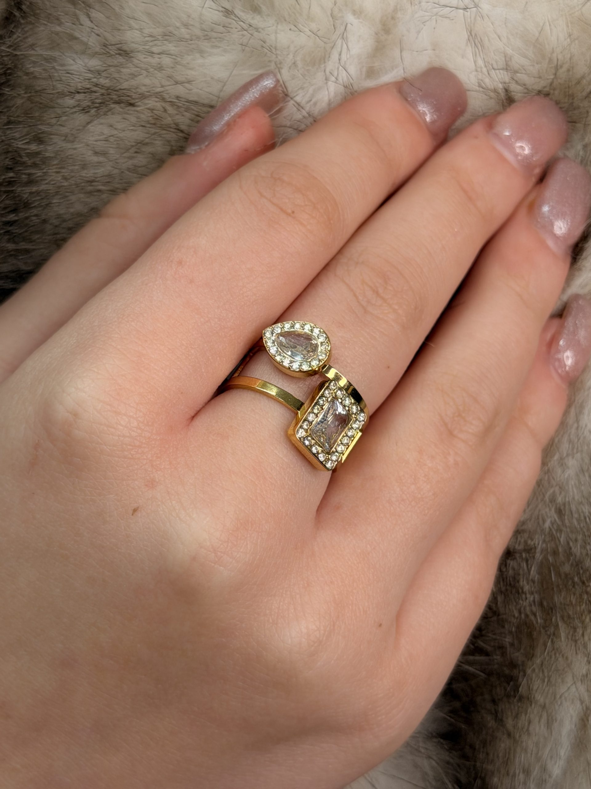 Découvrez notre BAGUE – MAYA, une pièce élégante qui combine deux formes serties de pierres scintillantes pour un rendu à la fois moderne et féminin. Sa composition en acier inoxydable lui assure une excellente tenue dans le temps : elle ne noircit pas, ne rouille pas et peut se porter tous les jours. Grâce à son système ajustable, elle s’adapte facilement à la taille de votre doigt tout en restant confortable. Un bijou lumineux qui habille instantanément la main, parfait pour compléter vos looks avec raffinement.