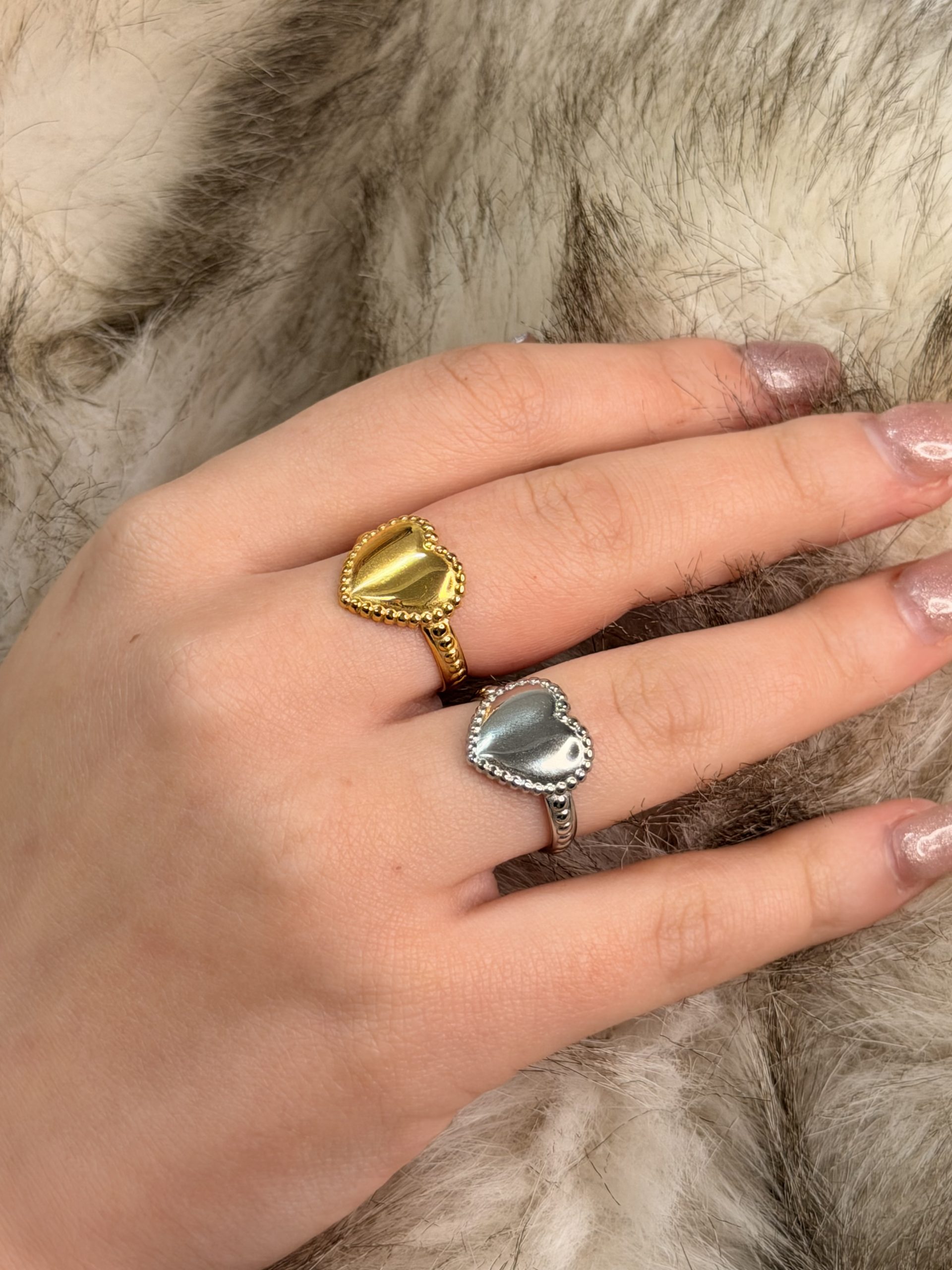Découvrez notre BAGUE – YOU, une pièce délicate qui met en valeur un cœur lisse entouré de petits détails perlés. Son design romantique et moderne apporte une touche de douceur à toutes tes tenues, que ce soit au quotidien ou pour une occasion spéciale. Réglable et confortable, elle s’adapte à tous les doigts sans effort. Résistante à l’eau, elle garde son éclat jour après jour.
