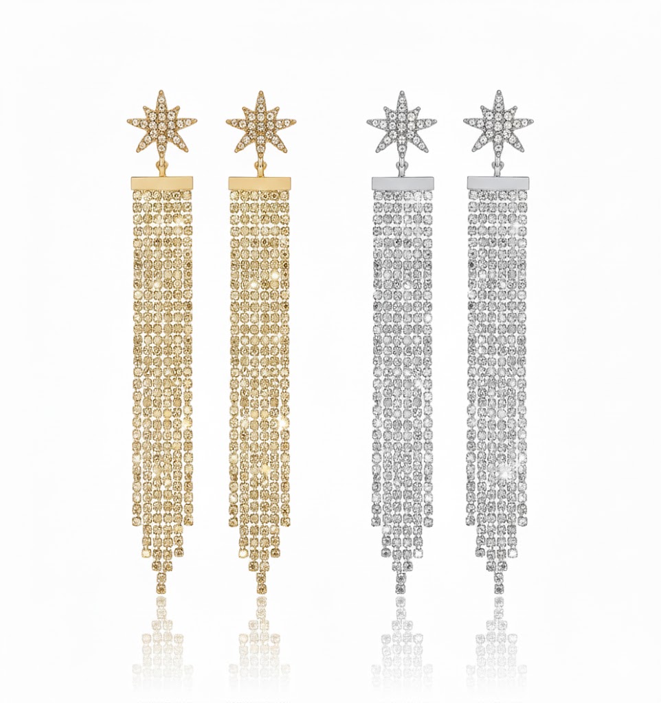 Découvrez notre BOUCLE – CÉLESTE, une pièce éclatante qui allie raffinement et allure audacieuse. Ornée d’une étoile scintillante en strass, chaque boucle se prolonge par de délicates chaînes lumineuses qui dansent à chaque mouvement. Ce modèle allongé affine le port de tête et capte magnifiquement la lumière, parfait pour sublimer vos looks festifs ou habillés. Disponibles en doré et en argenté, les Célestes sont conçues en acier inoxydable pour résister à l’eau et garder tout leur éclat. Un bijou sophistiqué et intemporel pour briller en toute élégance.