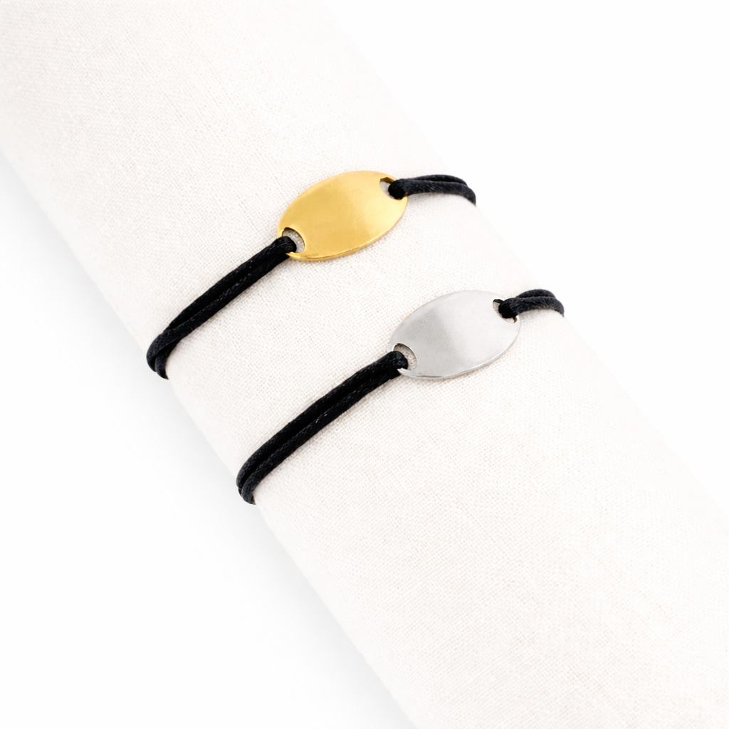 Découvrez notre CORDON – LILO à graver, au design épuré, parfait pour un look discret et tendance au quotidien. Conçu en acier inoxydable, il est résistant et durable, idéal pour être porté tous les jours. Son cordon noir, ou d’une autre couleur apporte un contraste moderne et s’ajuste facilement au poignet pour un confort optimal. Disponible en doré et en argenté, il s’accorde avec toutes tes tenues et se porte seul ou en accumulation. Un bijou intemporel, parfait comme idée cadeau et indispensable dans une collection de bijoux en acier inoxydable.