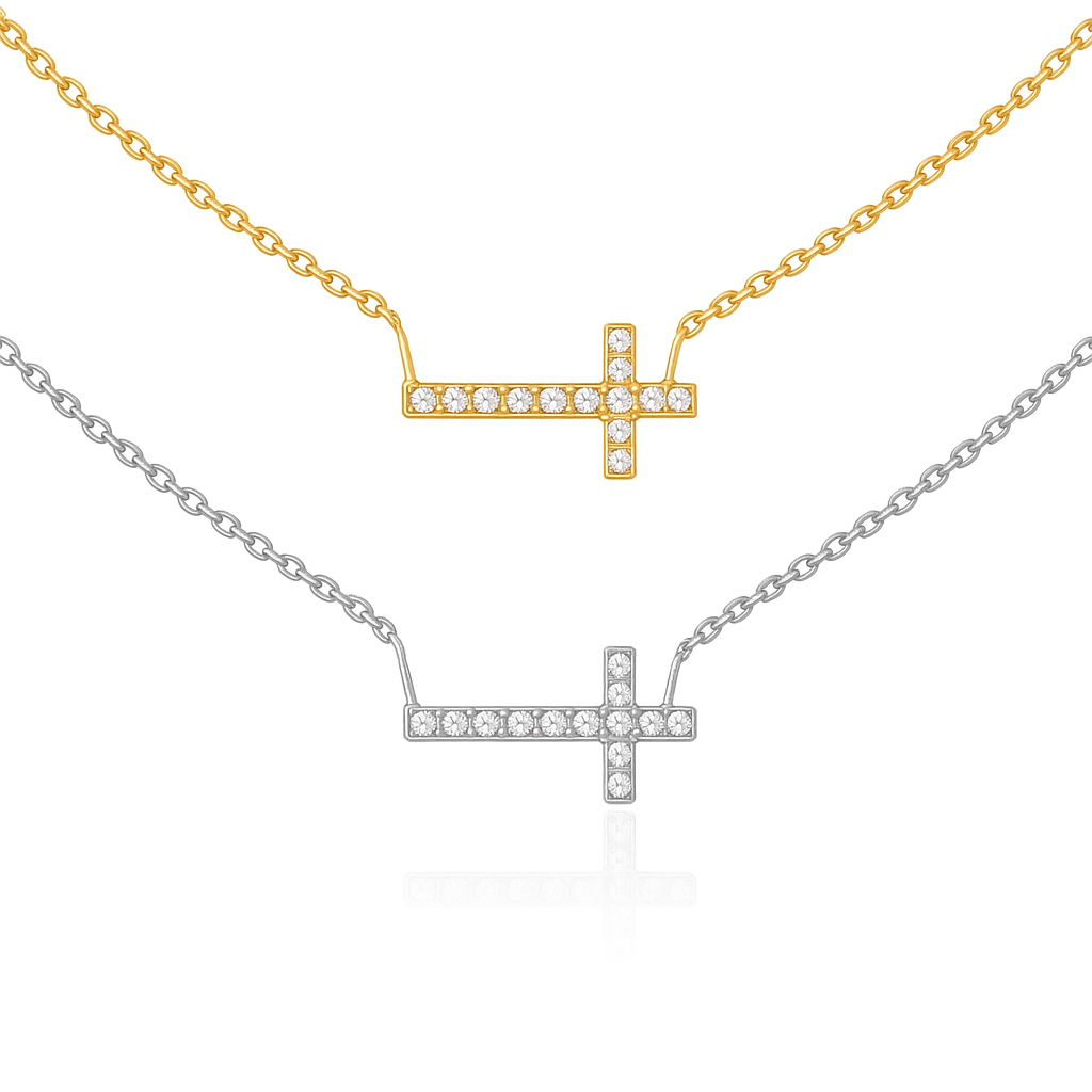 Découvrez notre COLLIER – CRUZ, réalisé en acier inoxydable pour un éclat durable et une résistance parfaite au quotidien. Son pendentif croix serti de zircons scintillants se porte de manière horizontale, apportant une touche moderne et originale à un symbole intemporel. Disponible en doré ou argenté, il se porte aussi bien seul qu’en accumulation pour un style tendance.