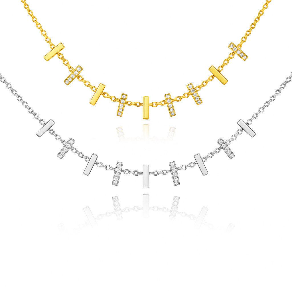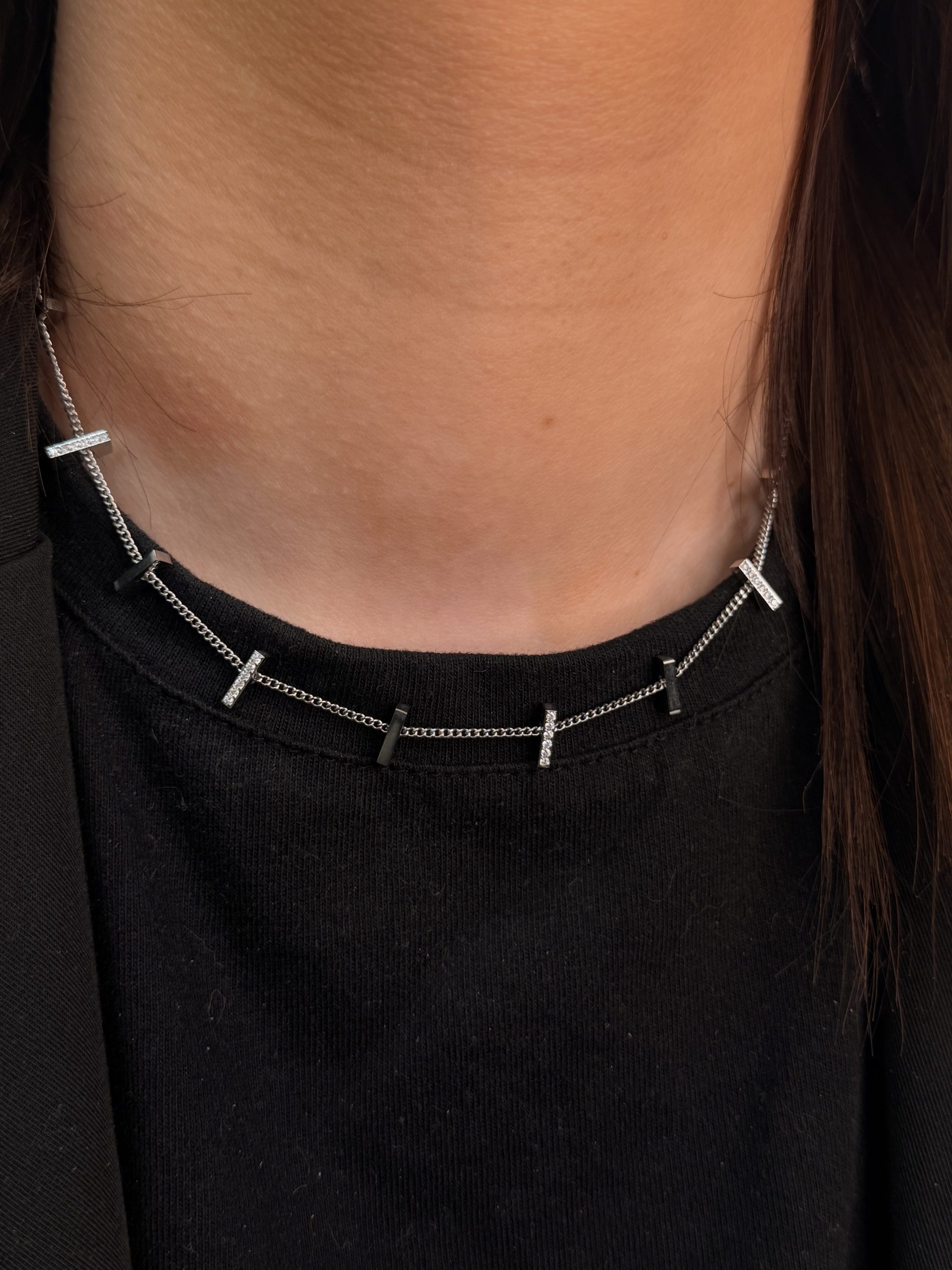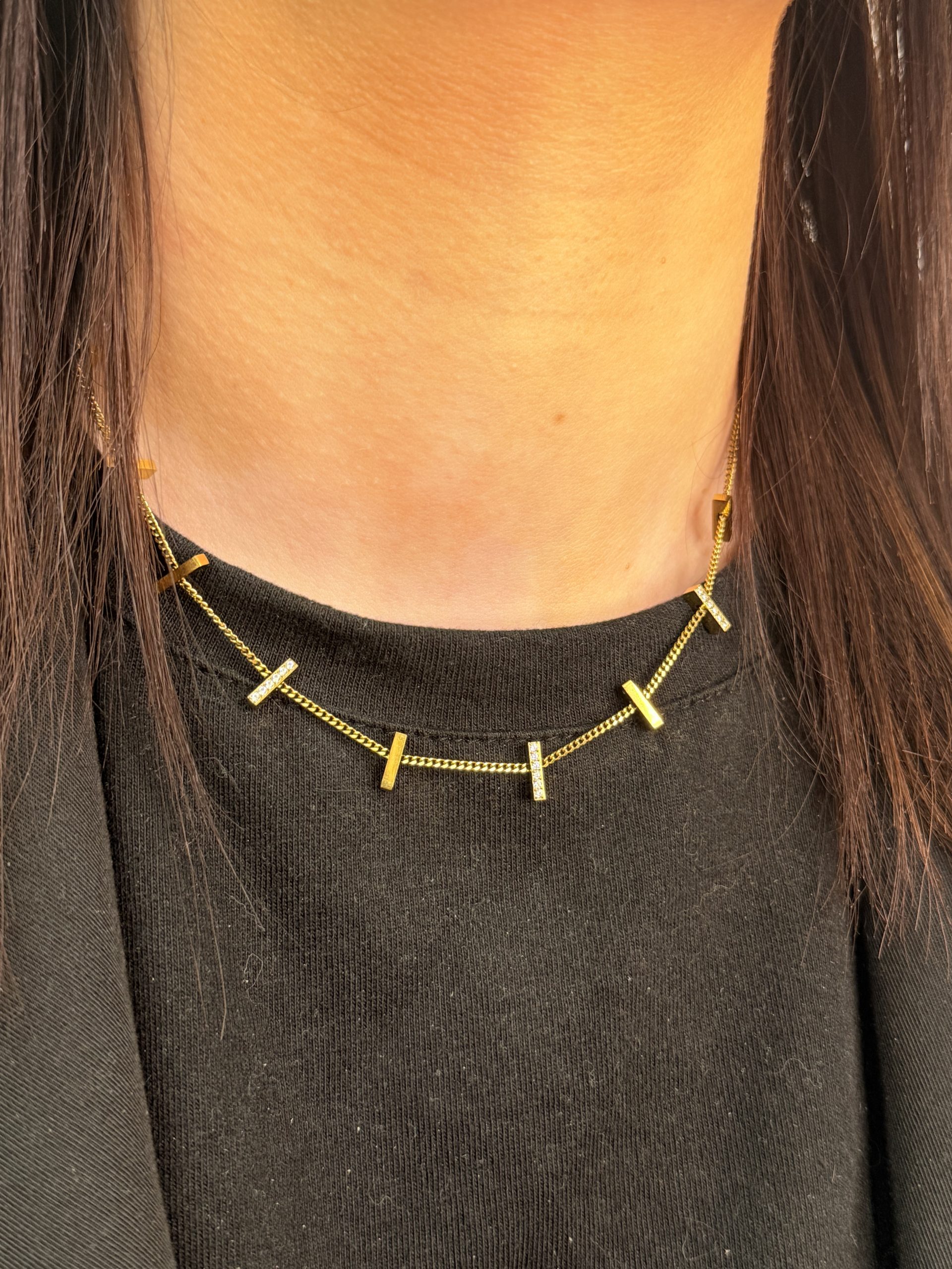 Découvrez notre COLLIER – LINÉA, fabriqué en acier inoxydable, un matériau durable qui garde tout son éclat. Son design moderne, composé de maillons ornés de barres fines serties de zircons étincelants, offre un jeu de lumière raffiné. Disponible en doré ou argenté, ce bijou tendance se porte aussi bien seul qu’en superposition pour un style affirmé et élégant.
