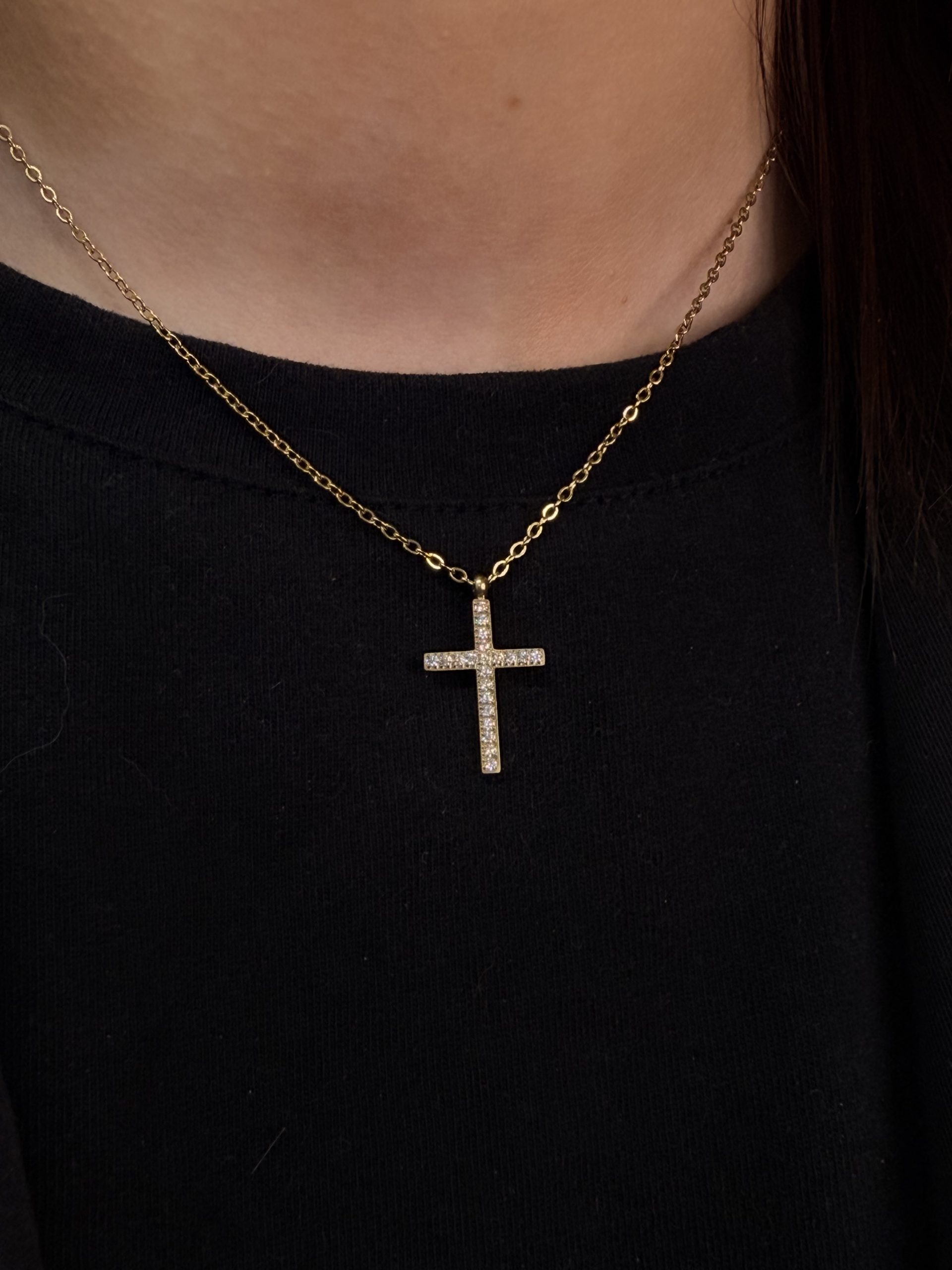 Découvrez notre COLLIER – MANI, confectionné en acier inoxydable pour un éclat durable et une solidité incomparable. Son pendentif en croix, délicatement serti de zircons scintillants, allie élégance et symbolisme intemporel. Disponible en doré ou argenté, ce bijou raffiné apporte une touche de lumière et de caractère à toutes vos tenues.