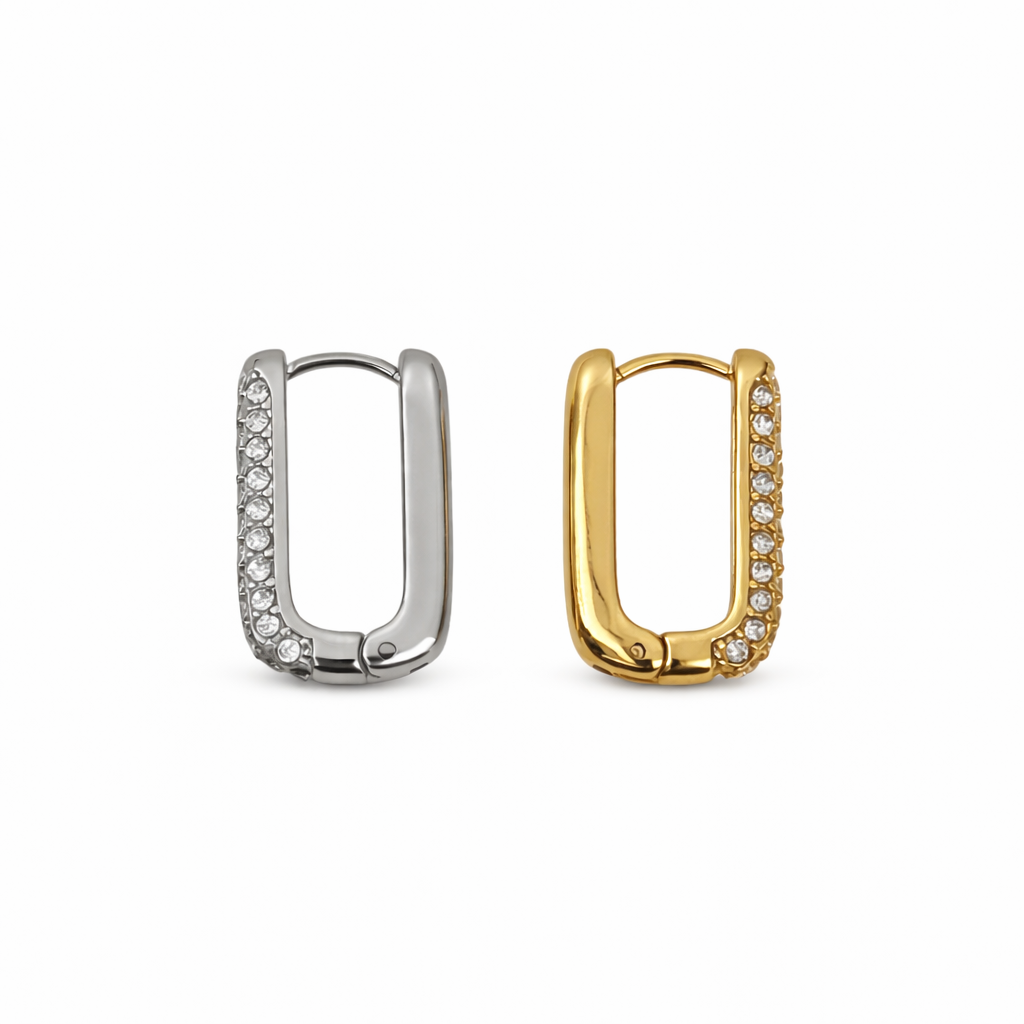 Découvrez notre CRÉOLE – APPOLINE, une paire sophistiquée qui attire la lumière à chaque mouvement. Son design rectangulaire revisite la créole classique avec une touche contemporaine, sublimée par une multitude de zircons étincelants. Réalisées en acier inoxydable doré ou argenté, ces boucles d’oreilles résistent à l’eau et conservent leur éclat durablement. Élégantes et audacieuses à la fois, les Maëva subliment vos tenues de jour comme de soirée, pour un style affirmé et lumineux.