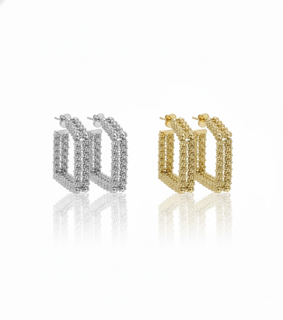 Découvrez notre CRÉOLE – OLLY, une pièce graphique et moderne qui revisite la créole avec une forme carrée audacieuse. Leur texture perlée unique capte la lumière et apporte un relief raffiné à votre look. Disponibles en doré et argenté, elles s’accordent à toutes vos tenues et ajoutent une touche de caractère en un clin d’œil. Conçues en acier inoxydable, elles résistent à l’eau et ne ternissent pas : idéales pour un port quotidien.