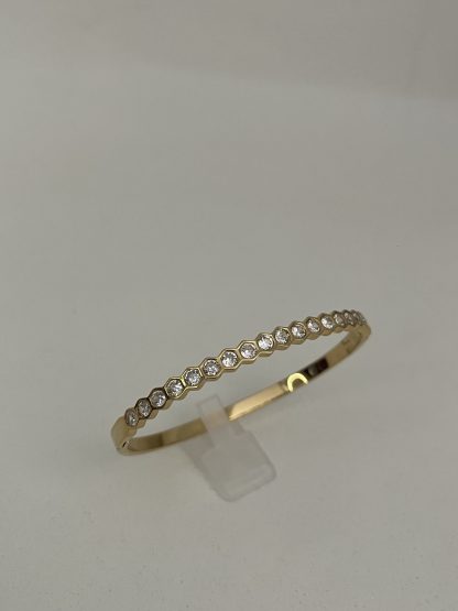 Découvrez notre JONC – CALYPSO, ovale et fin combinant délicatesse et sophistication. Sur le dessus, une série de strass ronds est disposée avec soin, apportant une brillance subtile et raffinée. Au centre de ces strass, un jonc octogonal se distingue par sa forme géométrique unique, ajoutant une touche de modernité et de caractère à l’ensemble. L’alliance de la finesse du jonc ovale et du design angulaire du motif octogonal crée un contraste élégant et dynamique. Ce bijou, en acier inoxydable, est idéal pour celles qui recherchent un accessoire à la fois minimaliste et chic, apportant une touche de lumière à chaque mouvement.
