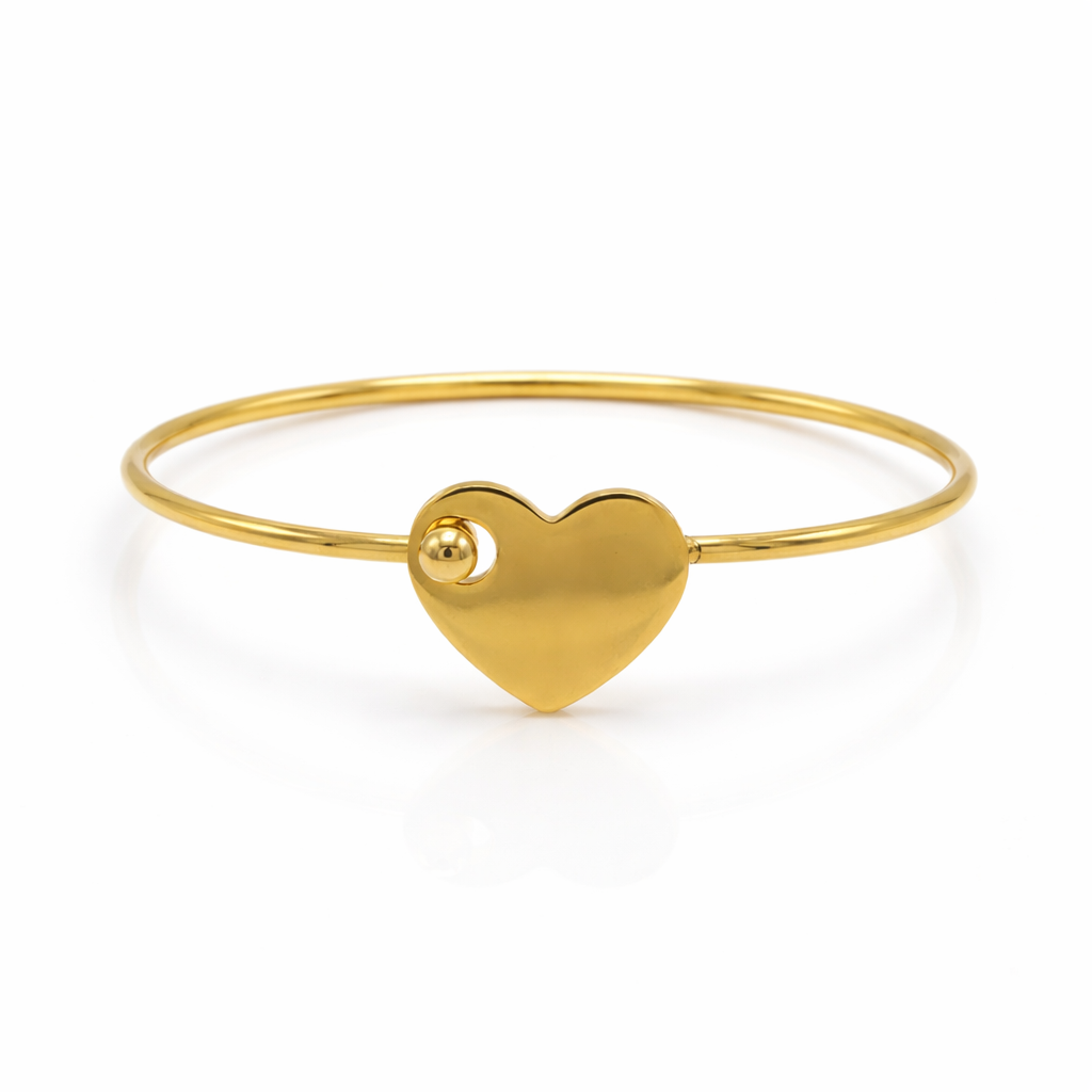 Découvrez notre JONC – COEUR à graver, un bracelet élégant et intemporel pensé pour sublimer ton poignet au quotidien. Son anneau fin en acier inoxydable doré accueille un joli pendentif cœur traversé par une petite perle mobile, apportant une touche délicate et moderne. Léger, confortable et résistant à l’eau, il se porte aussi bien seul qu’en accumulation. Sa finition brillante lui donne un charme raffiné qui accompagne toutes les tenues. Un bijou plein de douceur, idéal à offrir ou à s’offrir.