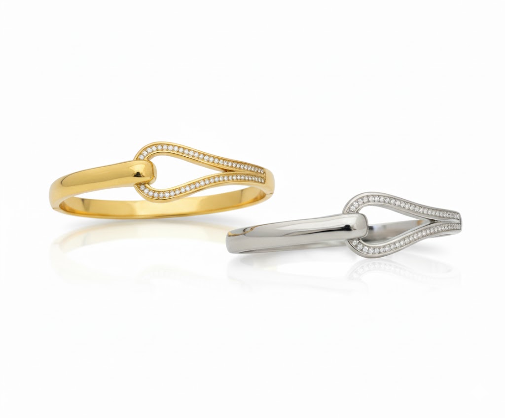 Découvrez notre JONC – IRIS, un modèle raffiné qui allie élégance contemporaine et confort d’usage. Disponible en finition dorée ou argentée, ce jonc rigide s’ouvre facilement sur le côté grâce à un système discret et sécurisé, idéal pour un enfilage rapide. Son design en forme de boucle lisse est rehaussé de strass délicats qui apportent une touche de lumière subtile à ton poignet. À la fois minimaliste et sophistiqué, Iris se marie avec toutes tes tenues, du quotidien aux grandes occasions. Conçu en acier inoxydable, il résiste à l’eau et ne ternit pas, pour t’accompagner longtemps avec style. À porter seul pour un look épuré ou en accumulation pour un effet tendance assuré.