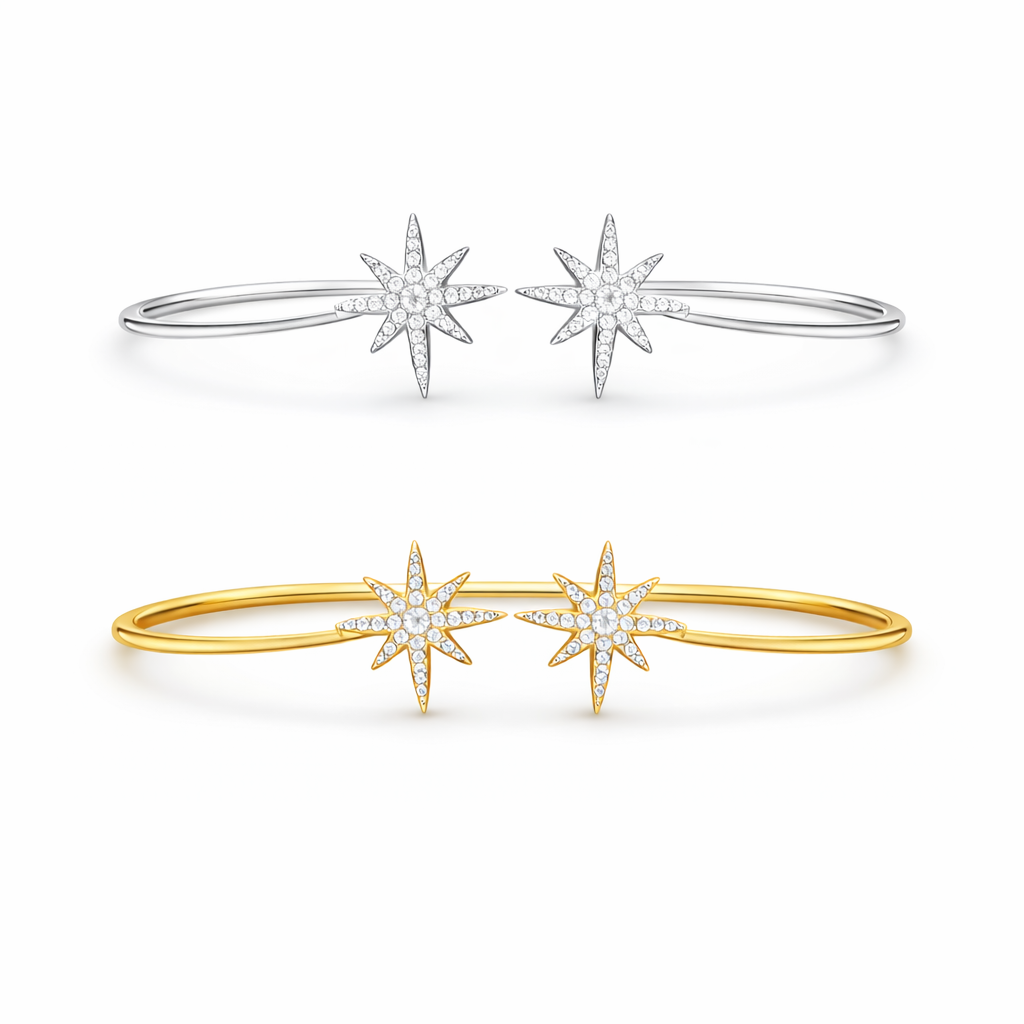 Découvrez notre JONC – ZAYA, un bijou élégant et lumineux qui sublime ton poignet avec finesse. Conçu en acier inoxydable, il est résistant à l’eau et ne ternit pas avec le temps. Son design ouvert est orné de deux étoiles scintillantes, apportant une touche céleste et raffinée. Les détails en strass captent la lumière pour un rendu chic et délicat. Disponible en doré et argenté, il s’adapte à toutes tes envies et styles. Un jonc moderne et féminin, parfait pour compléter ta collection de bijoux en acier inoxydable.