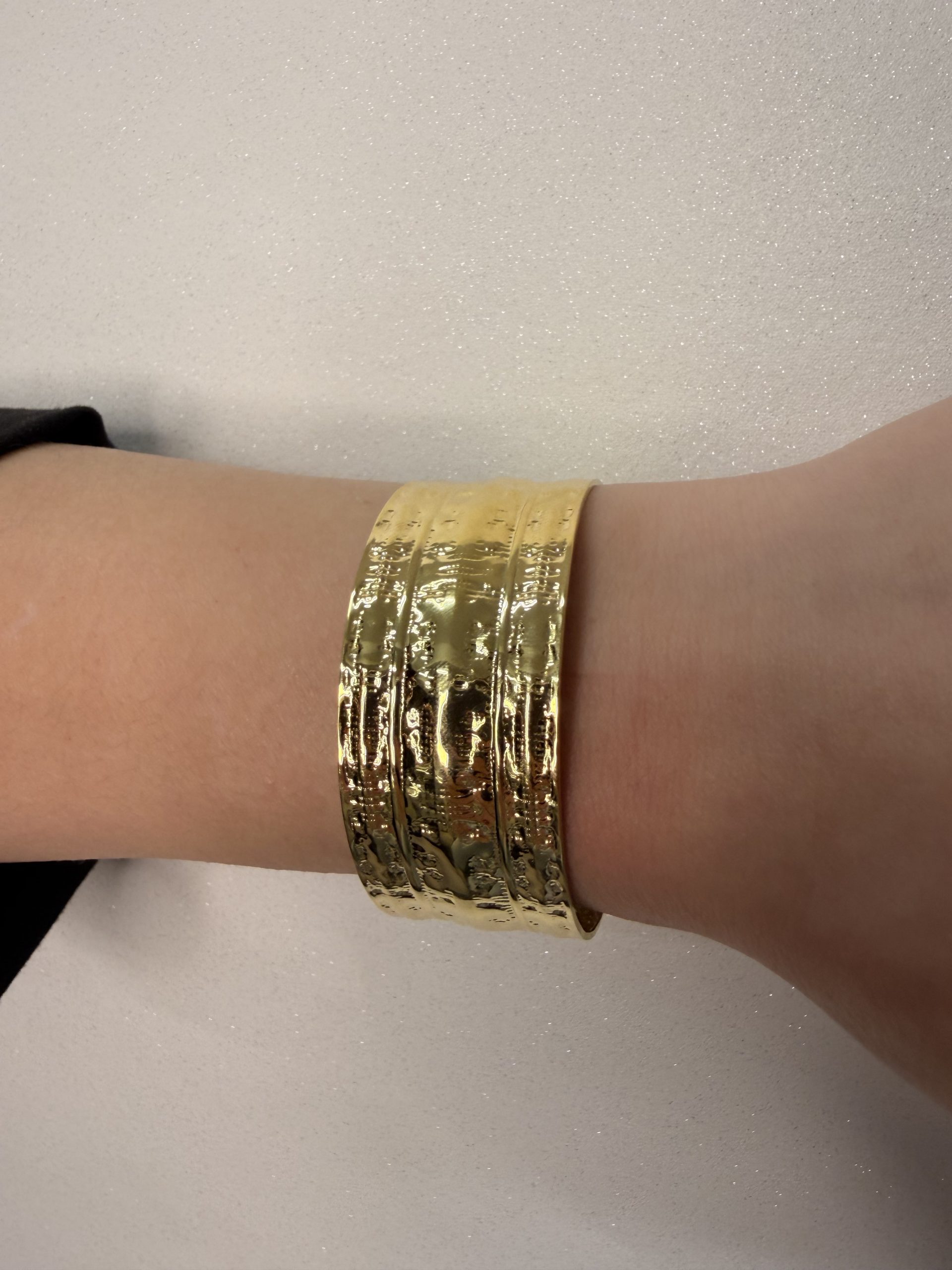 Découvrez notre MANCHETTE – LUCE, un bijou élégant et texturé qui apporte du caractère à ton poignet. Conçue en acier inoxydable, elle est résistante, durable et conserve son éclat au fil du temps. Son design composé de lignes martelées superposées offre un effet structuré et tendance. Large et affirmée, elle sublime aussi bien une tenue simple qu’un look plus habillé. Sa forme ouverte permet un ajustement facile pour un confort optimal au quotidien. Disponible en doré, c’est un bijou incontournable pour compléter une collection de bijoux en acier inoxydable.