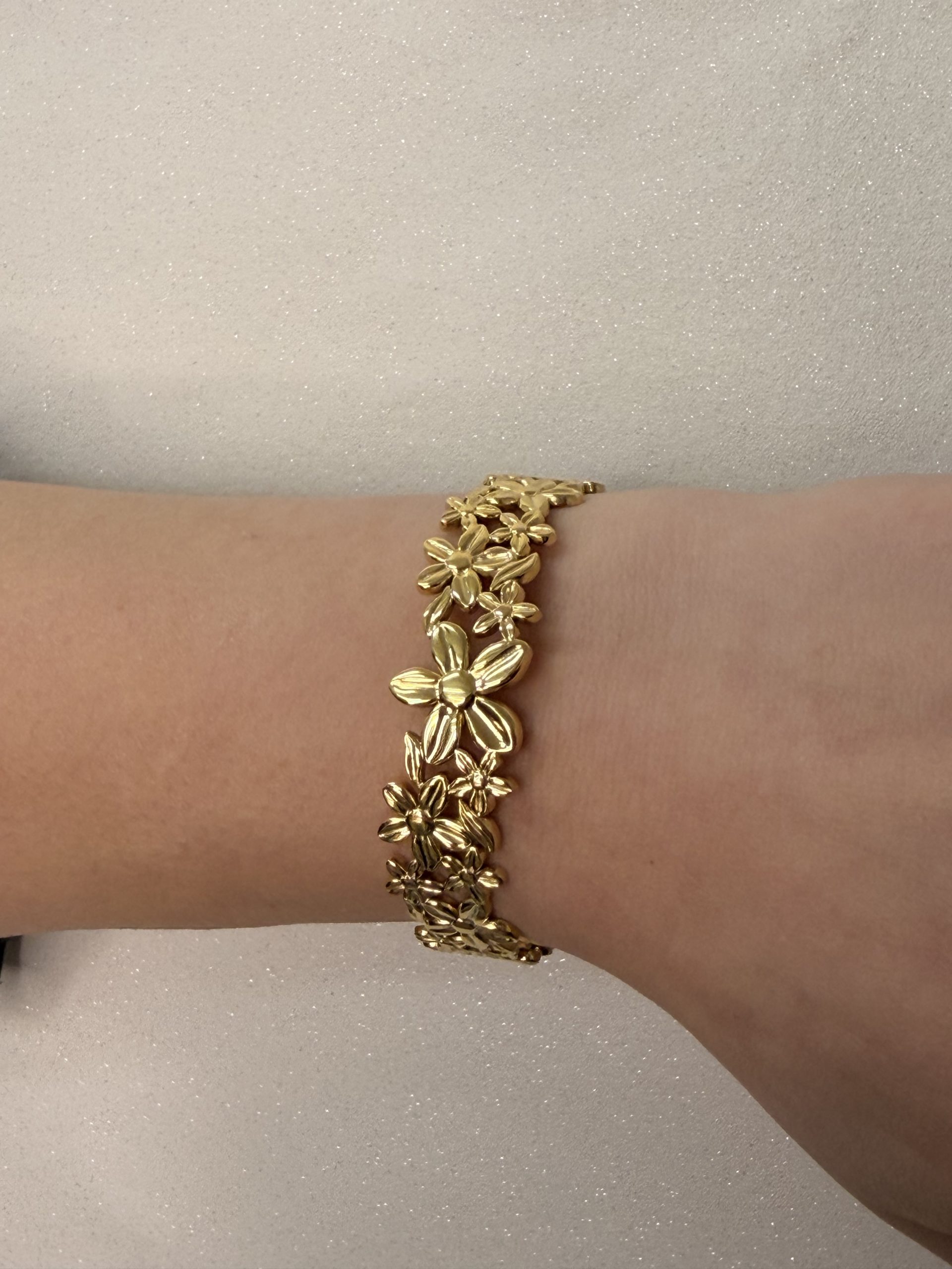 Découvrez notre MANCHETTE – VICTOIRE, un bijou élégant et féminin qui habille le poignet avec raffinement. Conçue en acier inoxydable, elle est résistante, durable et conserve son éclat au fil du temps. Son design délicat composé de fleurs en relief apporte une touche romantique et tendance.